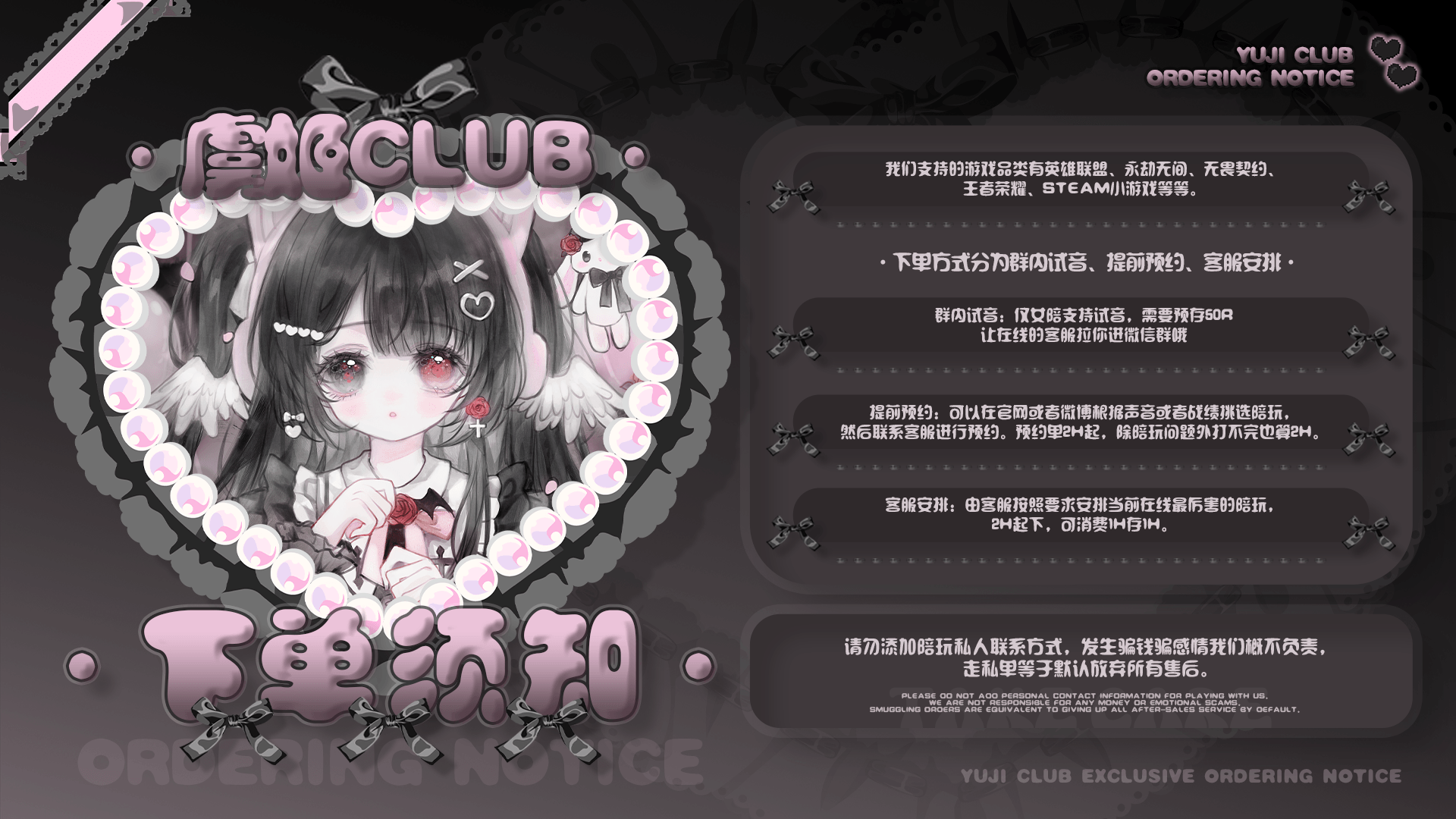 我们女陪部训练有素,妹妹们既擅长游戏又能陪你聊天。大家音色多样,声线有萌有御,可甜可盐,直接在群内试音,最贴心的战友即任君挑选!